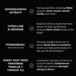 𝗧𝗼𝘁𝗮𝗹 𝗧 𝗧𝗲𝘀𝘁𝗼𝘀𝘁𝗲𝗿𝗼𝗻𝗲 𝗕𝗼𝗼𝘀𝘁𝗶𝗻𝗴 𝗖𝗼𝗺𝗽𝗹𝗲𝘅: Tongkat Ali, Tribulus Terrestris, Horny Goat Weed, Fenugreek | 𝗠𝗮𝗹𝗲 𝗣𝗲𝗿𝗳𝗼𝗿𝗺𝗮𝗻𝗰𝗲 & 𝗗𝗿𝗶𝘃𝗲 𝗖𝗼𝗺𝗽𝗹𝗲𝘅: Ashwagandha, Pycnogenol (french maritime pine bark extract), L-Citrulline, L-Arginine*