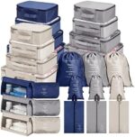 Features: Delicate gift: The luggage bag is the delicate gift for travelers, yourself, or relatives. Separating your different clothes with packing cubes of multiple sizes, so you can use it with confidence. Travel must have bag set: Packing cubes for suitcases come with multiple sizes, which can store and classify clothes, dirty laundry, bra, underwear, shoes, socks, cosmetics, towels, and electronics accessories well, you will be satisfied. Specifications: Main material: polyester Color: beige, dark blue and gray Size: as pictures shown Package includes: 27 x Travel organizer bags for luggage Notes: Manual measurement, please allow slight errors on size. The color may exist a slight difference due to different screen displays. In order to make this product provide you with longer use, it is better not to dry-clean them.