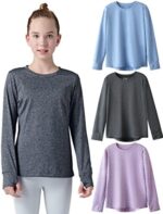 MULTIPACK: Set of 3 super cute, soft, and trendy long sleeve shirts for girls. Activewear clothing warm enough to wear alone or as a base layer over your favorite tee.