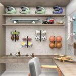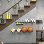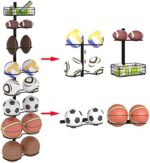 【Multifunctional Ball Rack】:This ball diaplay rack is designed with three different sizes of hooks for storing various sizes and types of ball equipment, such as basketballs, volleyballs, soccer balls, footballs, and more. The rack also features a basket design for storing smaller balls, such as golf balls, baseballs, shuttlecocks, and more.