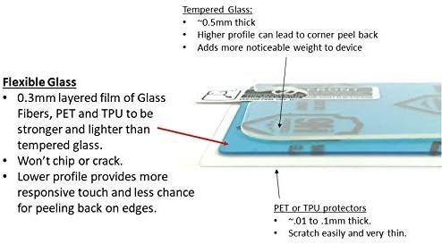 Our Screen Protector is a new breakthrough technology known as Nano Flexible Glass. It is a PET and TPU film 0.3mm thick, layered with glass fibers so it provides the same benefits of tempered glass, with the improvement that it won’t chip, crack or break like tempered glass screens. 9H hardness prevents it from scratching, where as the original vinyl film cover you got with your pump easily gets scratched up.