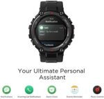 【YOUR ULTIMATE PERSONAL ASSISTANT】The Amazfit T-Rex Pro smart watch notifies you of any incoming text messages or calls, scheduled alarms, and events, to prevent you from missing any important information. It can also easily control music playback.