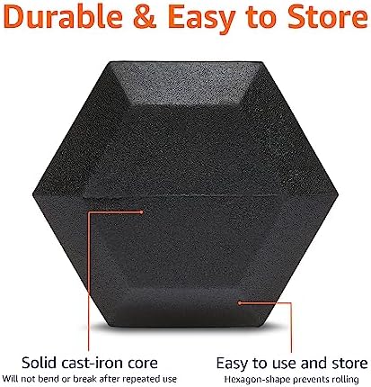 Amazon Basics Rubber Encased Exercise & Fitness Hex Dumbbell, Hand Weight For Strength Training