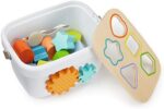 Includes a shape sorter toy and a rainbow stacker toy made of plastic and durable wood for reliable strength (FSC N004130)