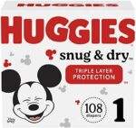 Give your baby day and night protection with Huggies Snug & Dry Baby Diapers. Huggies Snug & Dry Baby Diapers features Huggies’ Leak Lock Protection, giving your baby up to 12 hours of long-lasting protection. These disposable baby diapers absorb wetness in seconds, thanks to Huggies’ Triple Layer Protection. They also come with a soft, stretchy waistband for added comfort and curves at every layer to fit your baby’s delicate skin. Each baby diaper has a wetness indicator that changes from yellow to blue when your baby is ready for a diaper change. Snug & Dry disposable diapers are hypoallergenic, as well as free of fragrances, lotions, parabens, elemental chlorine and natural rubber latex. Featuring fun Disney Mickey Mouse designs as cute as your baby, Snug & Dry Diapers are available in sizes 1 (8-14 lbs), 2 (12-18 lbs), 3 (16-28 lbs), 4 (22-37 lbs), 5 (27+ lbs), 6 (35+ lbs) and size 7 (41+ lbs). Join Huggies Rewards+ powered by Fetch to get rewarded. Earn points on Huggies diapers and wipes, in addition to thousands of other products to redeem for hundreds of gift cards. Download the Fetch Rewards app to get started today! (*See the Huggies website for details. Expires 12/31/23)