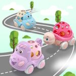 🪅【 Baby Rattle Toys for Infant Girls 】: The top of each toy car is a soft and flexible rattle with finger holes, making it easy for babies to grasp. Babies and toddlers enjoy playing with these pink rattle toy cars.