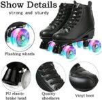 ➤Safer and Stable:The classic double-row roller skates are safer and more stable than the inline roller skates. There is a support column at the front for better control and quick braking. They are very suitable for beginners and men and women who want to learn roller skating easily.