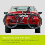 Adjustable: The quick-release clamps quickly and easily adjust to carry any kind of bike frame, from mountain bikes and cruiser bikes to unusual frames like “Y” frames or women’s styles. The telescoping bicycle crossbar adapter adjusts from Max 32.25″ Min 23″ in length.