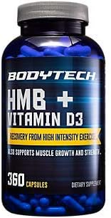 Home Healthcare & Wellness Supplements and Vitamins BodyTech HMB + Vitamin D3 – Supports Muscle Growth and Strength (360 Vegetable Capsules)