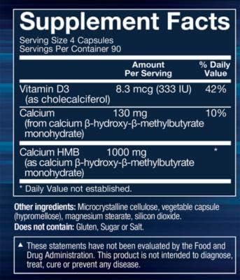 HMB and Vitamin D3 Supplement Capsules – Muscle Growth, Strength, Performance and Recovery Support – B-Hydroxy B-Methylbutyrate 1,000 MG HMB Supplements with Calcium, D3 250%DV – 90 Serve, 180 Capsule