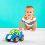 On your marks, get set. Crawl! The ball rattle & roll car will transform the living room into baby’s personal Highway of fun. No need for gas, this race car toy is fueled by baby’s imagination as he vrooms and zooms all over the place! With soft, flexible holes, the unique design encourages the development of fine motor skills by making it easy for baby to push and go. As your little speed racer crawls along with his vehicle, he’ll love the click-clack of the bead-filled tires. This virtually indestructible car is made for lifelong fun.