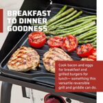– Double-sided grill/griddle combo lets you griddle breakfast, then flip it over and grill dinner