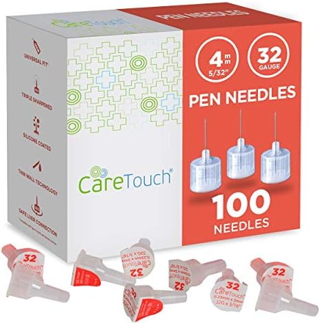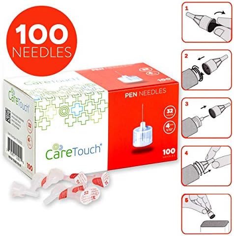 100 non-toxic and pyrogen-free pen needles, 32 gauge, 5/32 Inches (4mm)