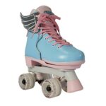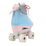The Circle Society Adjustable Children’s Roller Skates let your kids skate in style and have fun with confidence. These skates feature an easy push button with adjustable sizing to accommodate growing feet. The reinforced figure style boot with durable synthetic leather construction showcases a creative classic cotton candy print any girl or boy is sure to love! Plus, the 54mm smooth rolling urethane wheels with ABEC 1 sealed bearings allow for indoor rink or outdoor use. The dual front brakes make for easy stopping whether your little one is a beginner or a pro, and the laces provide a secure, comfortable fit. Great for kids and teens ages 5-14 years old, these roller skates accommodate US girls sizes 12-3.