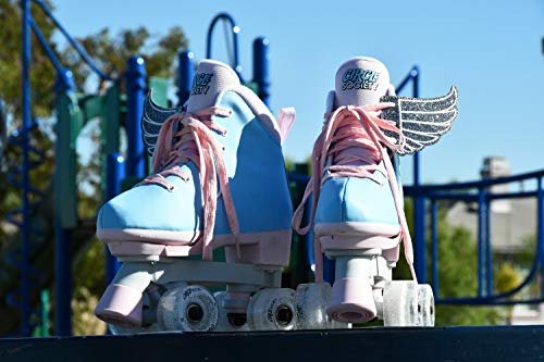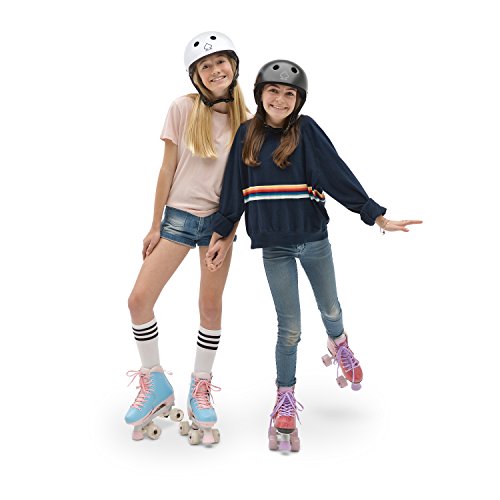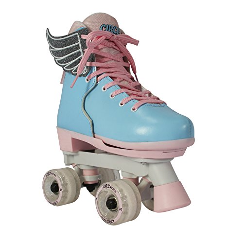 The Circle Society Adjustable Children’s Roller Skates let your kids skate in style and have fun with confidence. These skates feature an easy push button with adjustable sizing to accommodate growing feet. The reinforced figure style boot with durable synthetic leather construction showcases a creative classic cotton candy print any girl or boy is sure to love! Plus, the 54mm smooth rolling urethane wheels with ABEC 1 sealed bearings allow for indoor rink or outdoor use. The dual front brakes make for easy stopping whether your little one is a beginner or a pro, and the laces provide a secure, comfortable fit. Great for kids and teens ages 5-14 years old, these roller skates accommodate US girls sizes 12-3.