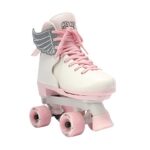 The Circle Society Adjustable Children’s Roller Skates let your kids skate in style and have fun with confidence. These skates feature an easy push button with adjustable sizing to accommodate growing feet. The reinforced figure style boot with durable synthetic leather construction showcases a creative classic pink vanilla design any girl or boy is sure to love! Plus, the 54mm smooth rolling urethane wheels with ABEC 1 sealed bearings allow for indoor rink or outdoor use. The dual front brakes make for easy stopping whether your little one is a beginner or a pro, and the laces provide a secure, comfortable fit. Great for kids ages 3-years-old and up, these roller skates accommodate US girls sizes 3-7 and a max weight capacity of 125 lbs.