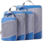These compression packing cubes for carry-on suitcases are designed with extra zippers that allow you to reduce the size of the cubes for travel, making them more compact for easy storage.