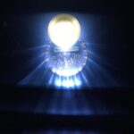Light turns on when lid is raised open, turns off when lid is closed shut; auto shut-off after 20 seconds of continuous use