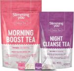 The 2-Step Detox Morning & Evening Tea Set can help you gently detox your body, improve digestion, reduce bloating, boost metabolism.