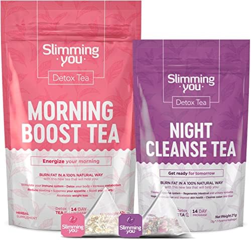 The 2-Step Detox Morning & Evening Tea Set can help you gently detox your body, improve digestion, reduce bloating, boost metabolism.