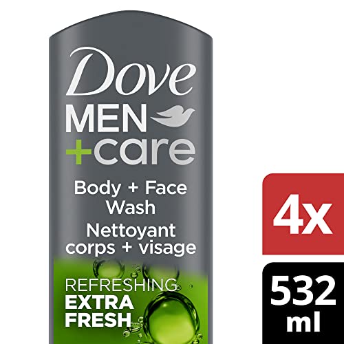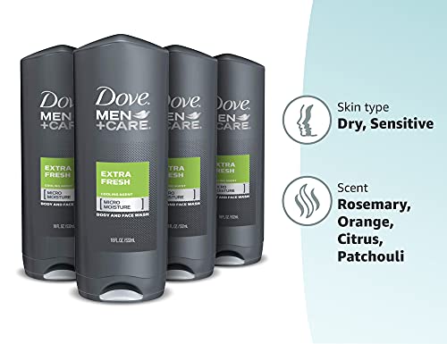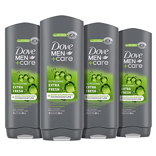 Dove Men+Care Body Wash Extra Fresh for Men’s Skin Care Body Wash Effectively Washes Away Bacteria While Nourishing Your Skin, 18 Fl Oz (Pack of 4)