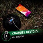 Rechargeable: The light & camping fan can be recharged in 3.5 hours and features a USB port-out that allows you to easily plug in and charge your devices at the campsite