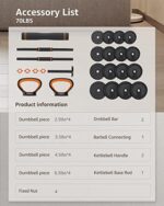 【More Weight Options】The dumbbell pieces feature a detachable design, and the adjustable weight range for the single dumbbell is 6lbs-25lbs, which meets your exercise intensity needs in different stages. Installation is easy.