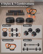FEIERDUN Adjustable Dumbbells, 20/30/40/50/70/90lbs Free Weight Set with Connector, 4 in1 Dumbbells Set Used as Barbell, Kettlebells, Push up Stand, Fitness Exercises for Home Gym Suitable Men/Women