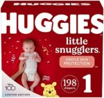 Huggies Little Snugglers Newborn Baby Diapers are designed for up to 12 hours of gentle skin protection for your little one. These disposable baby diapers are made with a curved and stretchy fit, delivering all-around comfort for a gentle tummy fit. The GentleAbsorb Liner absorbs wetness on contact, helping keep your baby’s skin clean and healthy. These newborn diapers also have a soft, back pocketed waistband to prevent diaper blowouts and contain the mess. Extra soft materials provide belly comfort and protection during Tummy Time. Little Snugglers also feature a color-changing wetness indicator that lets you know when your baby’s diaper is ready to be changed. They’re also hypoallergenic, dermatologist tested and safe for sensitive skin, as well as fragrance free, lotion free, paraben free, and free of elemental chlorine and natural rubber latex. Designed with limited edition Disney Winnie the Pooh graphics that celebrate 100 years of Disney, Little Snugglers Diapers are available in size Preemie (up to 6 lbs), size Newborn (up to 10 lbs), size 1 (8-14 lbs), size 2 (12-18 lbs), size 3 (16-28 lbs), size 4 (22-37 lbs), size 5 (27+ lbs) and size 6 (35+ lbs). Don’t get caught without Huggies diapers! Sign up for Subscribe & Save to ensure you always have Little Snugglers on hand. Join Huggies Rewards+ powered by Fetch to get rewarded. Earn points on Huggies diapers and wipes, in addition to thousands of other products to redeem for hundreds of gift cards. Download the Fetch Rewards app to get started today!