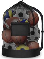 joyliveCY Extra Large Sports Ball Bag, Mesh Soccer Team Balls Bag, Drawstring Sport Equipment Storage Bag for Basketball, Beach Cloth and Swimming Gears