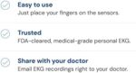 EKG HISTORY: With the press of a button, email your EKGs to your doctor or save them on your phone, no subscription required.