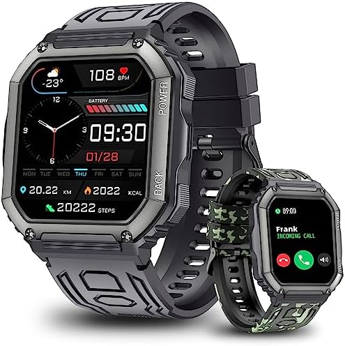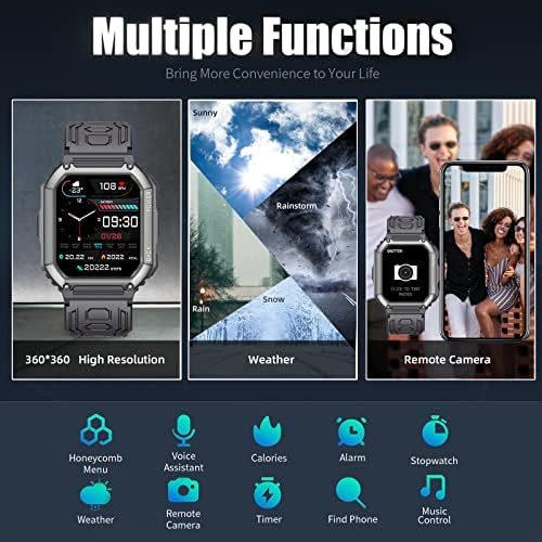 🏆【Rugged Smart Watch for Outdoor Sports】Our smart watch is waterproof (IP67), shockproof, anti-magnetic, designed for professional outdoor sports. The watch is fully enclosed with an ultra-thin aluminum alloy case design, making it the toughest and strongest watch available, and can be submerged in water up to 50 meters deep. Rugged and drop-resistant, built-in components are not damaged by vibration. Automatic isolation of magnetic interference, watches near magnetic fields work normally. An additional camouflage belt is specially prepared for explorers.