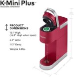 The Keurig K-Mini Plus single serve coffee maker in Cardinal Red features a new sleek design, and at less than 5 inches wide is the perfect size for any space or occasion. The K-Mini Plus brewer is effortlessly simple to use, just add fresh water to the removable reservoir, pop in your favorite K-Cup pod, press the brew button and enjoy fresh brewed, delicious coffee in minutes. Choose from hundreds of delicious K-Cup pod varieties to enjoy 6-12oz of your favorite coffee, tea, cocoa, and iced beverages. And for those who like a bolder brew, select the Strong button to increase the strength and bold taste of your coffee. With a single cup removable reservoir, a pod storage unit to store 9 of your favorite K-Cup pods, and cord storage, the K-Mini Plus coffee maker is the portable brewer that makes anywhere perfect for great coffee. The K-Mini Plus coffee maker is available in a variety of matte-finish colors with silver detailing on the handle and drip tray. Based on consumer feedback, we have updated the K-Mini Plus Brewer. Customer reviews have been removed that relate to the previous version of the brewer.