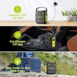 COMPACT&CONVENIENT: With the small size(5.7*5.6*2.7 inches) and light weight(2.2 lbs), this mini generator with leather handle design will save a lot of space in your bag or luggage which is really convenient for camping, hiking, fishing, business trip, tailgating party, etc.The portable power station can be used not only for daily life charging, but also for outdoors or wherever energy is needed in case of urgency.