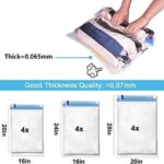 Merisiga 12 Pack Travel Space Saver Compression Bags for Travel, Camping and Storage, (Jumbo×4, Large×4, Small×4) Roll Up Reusable Travel Space Saver Vacuum Storage Bags, No Vacuum or Pump Needed