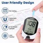 Easy to Use: Insert the contact bar of the strip into the meter firmly until it will go no further and make sure the front side (blue) face up; Once inserted correctly, the indicator light will be on with a beep, and the glucose meter will be ready to test