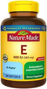 Nature Made Vitamin E 400 IU (180 mg) is an antioxidant supplement that provides Vitamin E, an essential nutrient that helps neutralize free radicals in the body. This Vitamin E supplement also supports immune health. Sourced from high-quality ingredients, these Nature Made Vitamin E 400IU (180 mg) softgels are gluten free and contain no color added, no artificial flavors and no added preservatives. This Vitamin E Nature Made dietary supplement is the dl-Alpha form of Vitamin E, which supports the body’s natural immune defenses. Adults, take one 400 IU Vitamin E softgel daily with water and a meal. Nature Made supplements are quality you can trust. USP has tested and verified ingredients, potency and manufacturing process. USP sets official standards for dietary supplements. Visit the USP verified website for more information. *Based on a survey of pharmacists who recommend branded vitamins and supplements.