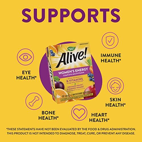 Complete daily multivitamin for women. Supports heart health, bone health, skin health, immune health, and eye health.* Formulated with 100% or more of the Daily Value of 20 essential vitamins and minerals, including iron, vitamin A, and vitamin C. With high potency B-vitamins to help convert food into fuel.* Contains food-based Orchard Fruits & Garden Veggies powder blend (100 mg per serving). Gluten-free. No yeast-derived ingredients, wheat, dairy, or preservatives.