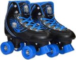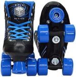 Epic Skates newest line of quad roller skates is sure to get kids excited about skating with fresh new designs and a high top boot featuring an extremely soft, comfortable, shoe like feel. The Epic Skate Rock Candy Quad Roller Skates for kids have been designed with the beginner child skater in mind and are both very comfortable and supportive. These affordable kids’ quad roller skates also feature a durable nylon plate with double action trucks, ABEC 3 bearings and polyurethane quad roller skate wheels that are great for use on both indoor and outdoor surfaces.