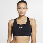 Women’s Nike Swoosh Sports Bra utilizes a compression fit, providing medium support for a variety of training activities. Sports bra straps create stabilizing tension, helping to minimize bounce during multidirectional movement.