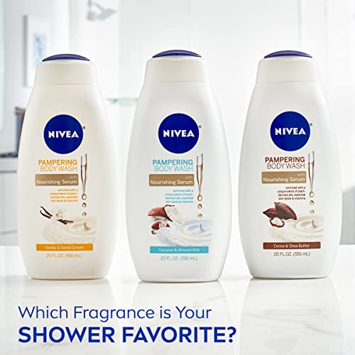 Includes one (1) 20 fluid ounce bottle of NIVEA Coconut and Almond Milk Body Wash with Nourishing Serum