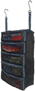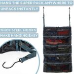 UNPACK IN MINUTES: When you arrive, take the organizer out of your bag, hang it up and just like that, you’re done. The reinforced steel hooks make hanging the packing cube shelf anywhere easy!