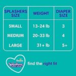 Your baby is free to make a splash in Pampers Splashers disposable swim diapers! Pampers Splashers don’t swell in water like regular diapers, giving your baby a comfortable fit when wet or dry. For secure protection in the water, Splashers Dual-LeakGuard BarriersTM fit snug around your baby’s legs to help contain messes, making them perfect for the pool, beach, splash park, and more. Only Pampers Splashers are designed with a 360° all-around stretchy waistband that fits like swimwear and easily pulls on and off—even when wet. Plus, Splashers are equipped with Easy-Tear Sides for a quick disposal with less mess, and our adorable, swim-inspired, all-over graphics look like real swimwear. Pampers Splashers make a day at the pool even more fun.