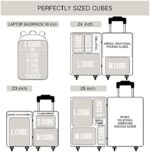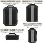 Premium Durability and Design: These packing cubes organizer are strong, durable, and look great inside your luggage. The reliable YKK brand zippers, double stitching, finished interior seams, and reinforced handles ensure true travel comfort Premium Functionality: Crafted from high-tech thin parachute nylon, ultra-light compression cubes add no weight to your luggage. Choose our double-sided compression packing cubes for the convenience of separately storing clean and dirty, wet and dry items. These cubes include ventilation compartments for optimal airflow. Premium Content: Our ultra-light compression cubes are made from thin, smooth, and durable diamond ripstop nylon 66, offering exceptional water resistance. The double-sided lightweight packing cubes utilize waterproof and durable diamond ripstop nylon, effectively preventing moisture intrusion for over a day, surpassing the capabilities of most available packaging cubes. For our classic compression packing bags, we have chosen premium water-repellent polyester for its superior quality. Compression Packing: By securely compressing the contents, our cubes prevent items from shifting during transit, minimizing wear and tear on your clothes. Smart Visibility: Waterproof mesh windows are thoughtfully sized, allowing you to see what’s inside without compromising privacy Product Details: Large Cube: 15.7” x 11.8” x 3.9” (Jackets, Pants, Sweaters, Dresses, Skirts) Medium Cube: 13.8” x 9.8” x 3.9” (Shirts, Blouses, T-Shirts, Shorts) Small Cube: 11” x 6.9” x 3.9” (Undergarments) Slim/ X-Cube: 11” x 4.3” x 3.9” (Undergarments, Toiletries, Cables) Flat Space Saving Laundry/Multifunctional Bag (not included in dual sided packing packing cubes): 18.5” x 14.2” (Dirty Clothes/Shoes/Other)