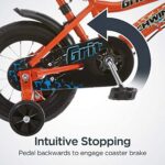 Rear coaster brake and front hand brake offering intuitive stopping power that’s easy to operate and perfect for learning to ride