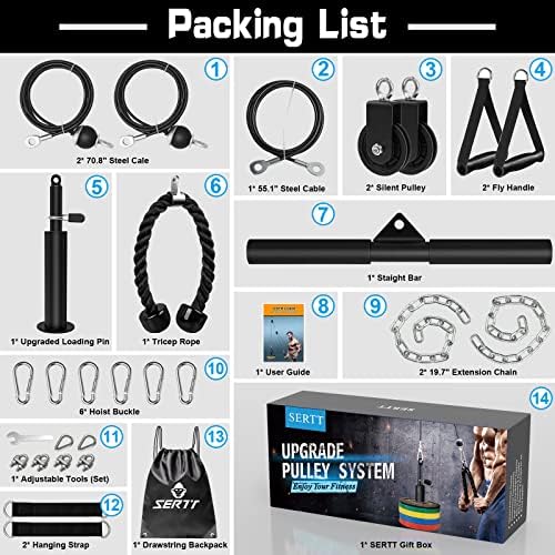 【Brand Support & Risk-Free Attempt】 SERTT is committed to simplify your home gym and provide the best quality home fitness products. All our products will be backed by our 120-Day No-Quibble Money Back guarantee policy and 24-month Replacement Warranty, and support 7*24h technology service. Just feel free to contact us if you have any question with our DIY pulldown pulley cable system, we will respond within 12 hours normally.