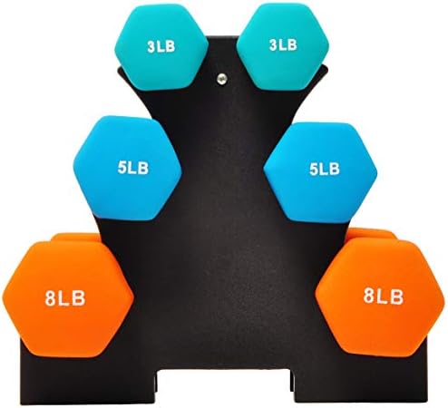 Neoprene coating on weights allow for a secure grip. The Hex shape of the dumbbells prevents them from rolling
