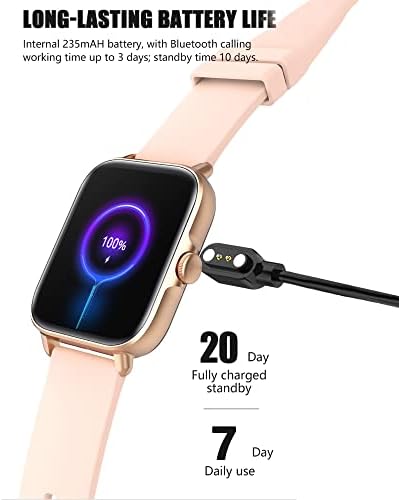 【IP68 Waterproof Smart Watch for Android IOS Phones and 235mAH Long Battery Life】The smart watch is compatible with iOS 9.0 and Android 4.4 and above devices. The smartwatch with 235mAH battery capacity can be fully charged in about 2 hours, and it can be used for 2 days bluetooth call. Support 20 days standby time.