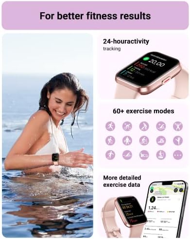 【Fitness Tracker & 60 Sports Modes】Fitness watch comes with 60 sports modes such as soccer, walking, running, swimming, hiking, cycling, mountaineering, yoga, etc. Accurately record all-day activities like steps, distance, calories burned, miles walked, and active minutes. The fitness tracker for men women is 5ATM waterproof, so you can wear it in the swimming pool, wash hands, and shower without worry. However, it is not recommended for use in hot water or seawater.