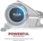 RESISTANCE: Challenge yourself with the programmable magnetic resistance when you power on this elliptical. Complete smooth strides as you engage the internal flywheel and the belt-drive mechanism
